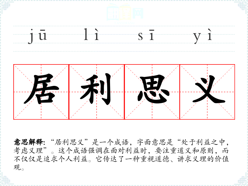 “居利思义”出自《孟子·告子下》,原文为“居利思义,利不失义”。其背景是孟子强调道德与利益之间的关系,提倡在处理事务时应先考虑道义,再去追求利益。这反映了儒家思想中重视伦理道德的传统。