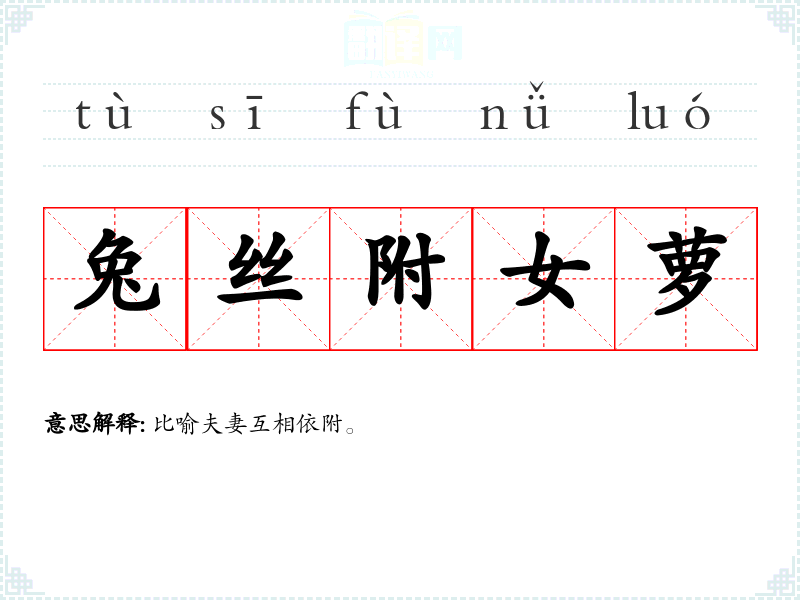 | 兔丝附女萝 | 比喻夫妻互相依附。 |