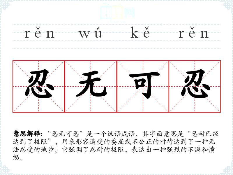 “忍无可忍”是一个汉语成语,其字面意思是“忍耐已经达到了极限”,用来形容遭受的委屈或不公正的对待达到了一种无法忍受的地步。它强调了忍耐的极限,表达出一种强烈的不满和愤怒。