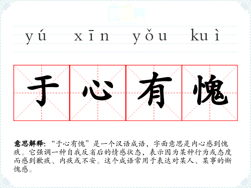 | 于心有愧 | 从内心感到惭愧。 |