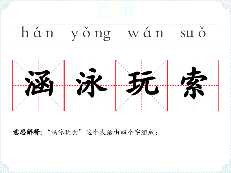 “涵泳玩索”这个成语由四个字组成: