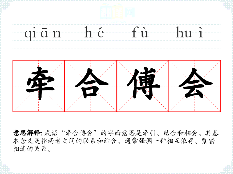 成语“牵合傅会”的字面意思是牵引、结合和相会。其基本含义是指两者之间的联系和结合,通常强调一种相互依存、紧密相连的关系。