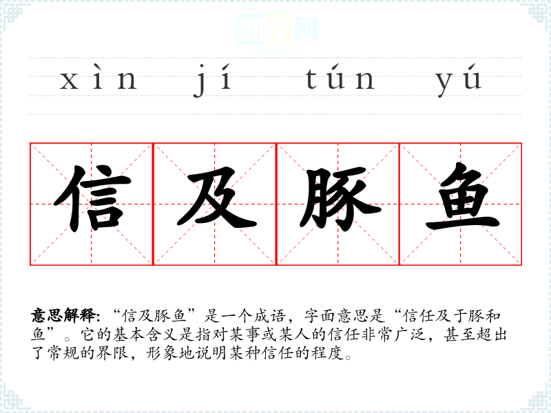 | 信及豚鱼 | 及:达到;豚:小猪。信用及于小猪和鱼那样微贱的东西。比喻信用非常好。 |