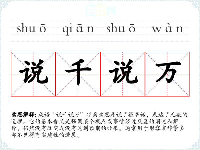 - 演讲:在强调某个观点不易改变时,可以引入“说千说万”的说法,来突出沟通的局限性。