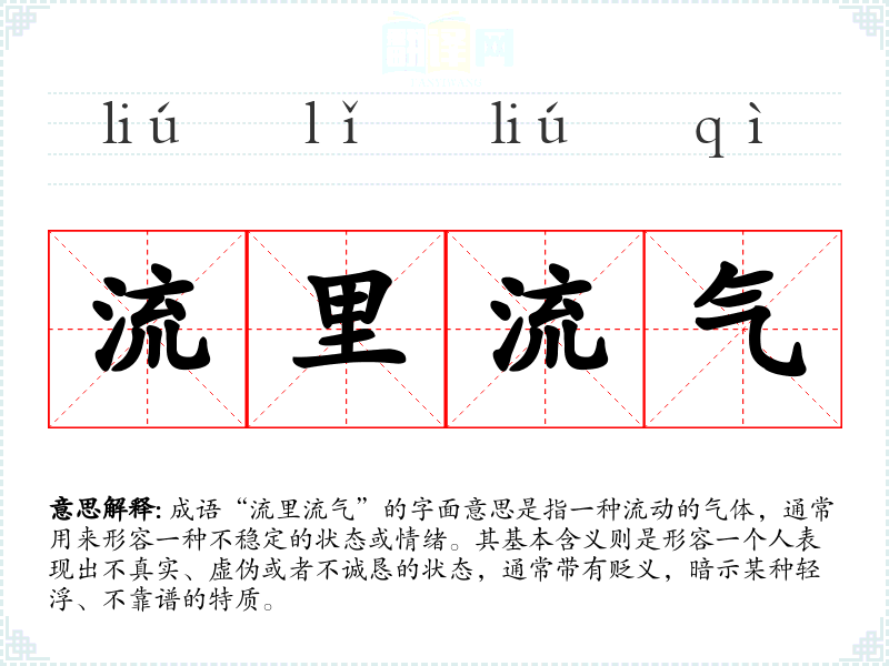 “流里流气”这个成语的具体来源并不明确,但在现代汉语中,它常被用于形容那些不稳重、不成熟,或者给人感觉不可靠的人。它的形成可能与古代对“流”和“气”的理解有关,“流”象征着不稳定和变化,而“气”则与人的气质和情绪息息相关。