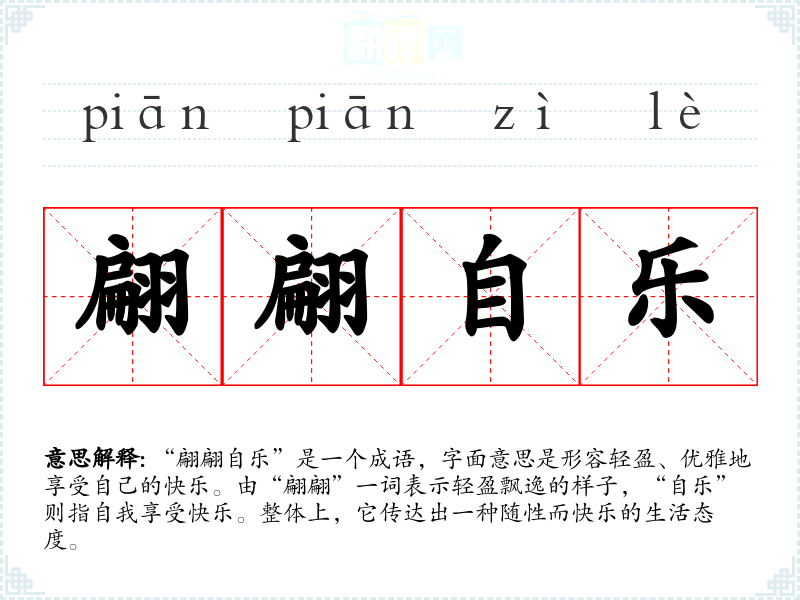 - 日常对话:可以用来形容某人在某个活动中表现得十分轻松自在,比如在朋友聚会中有人笑着说:“看他翩翩自乐,真是享受生活。”