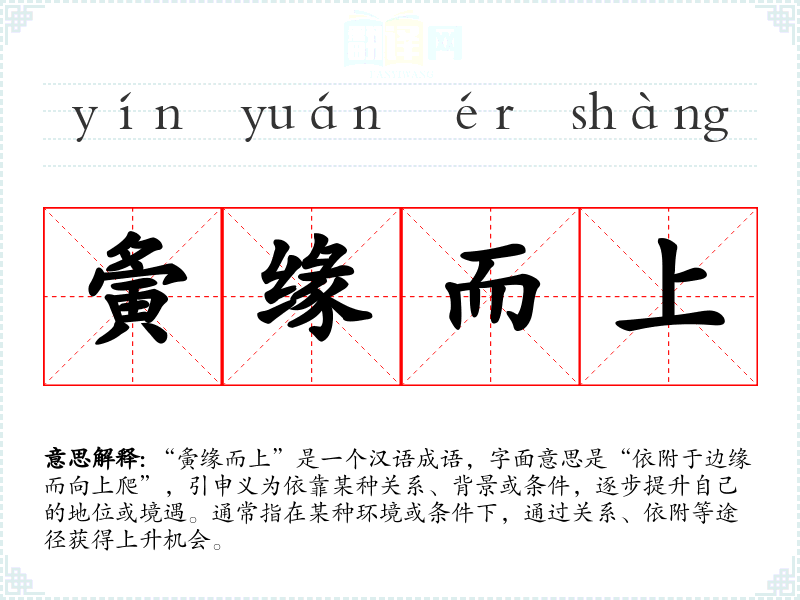 “夤缘而上”是一个汉语成语,字面意思是“依附于边缘而向上爬”,引申义为依靠某种关系、背景或条件,逐步提升自己的地位或境遇。通常指在某种环境或条件下,通过关系、依附等途径获得上升机会。