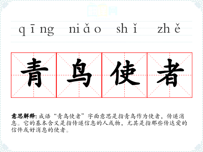 成语“青鸟使者”字面意思是指青鸟作为使者,传递消息。它的基本含义是指传递信息的人或物,尤其是指那些传达爱的信件或好消息的使者。